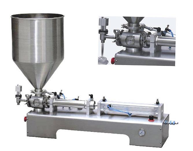 Remplissage horizontal à piston à une tête pour liquides visqueux, tels que ketchup, mayonnaise, crème, beurre, confiture, miel, shampooing, etc.