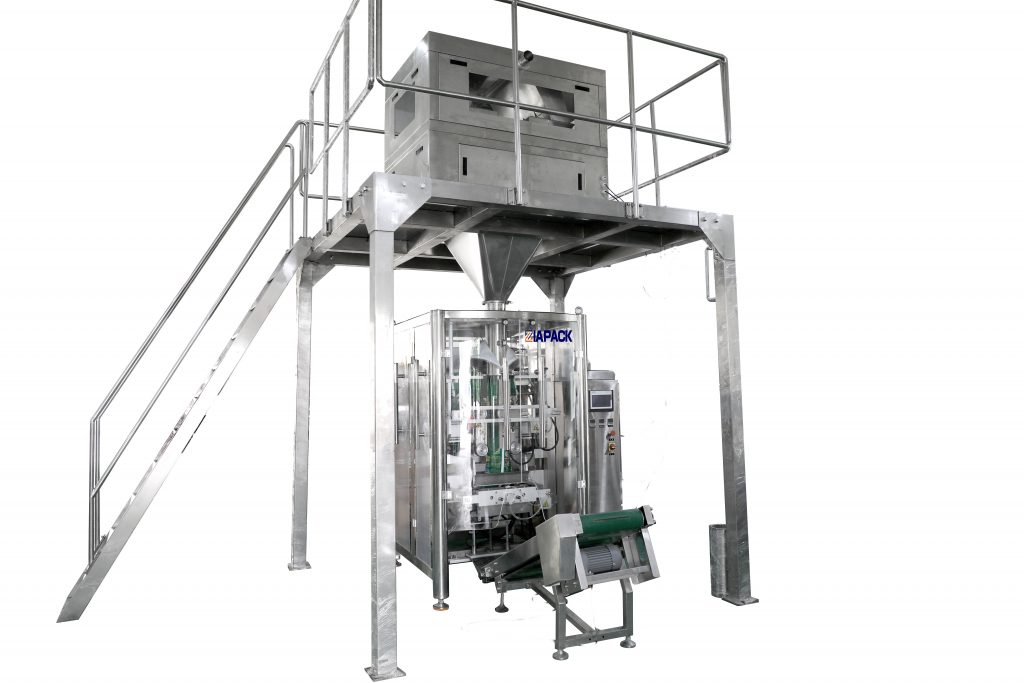 Cette unité de machine comprend un ensemble de sacs verticaux ZL720 formant une machine de scellage de remplissage et un ensemble de peseuses à six seaux ZLS-6, un ensemble d'ascenseur vertical DT3 et une machine de convoyeur de sortie. L'ensemble de la machine peut atteindre la fabrication automatique de sacs, la pesée du produit étanchéité et codage de la date. Largement utilisé pour emballer les lattes, les détergents en poudre, le riz, les haricots et autres produits granulaires.