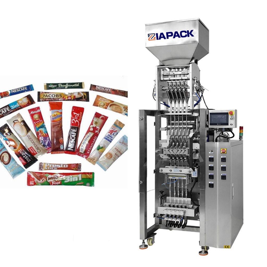 Ceci est un pack de bâtons multilanes sachet machine à emballer, applicable pour les matériaux d'emballage en poudre tels que le lait en poudre, le jus en poudre, le café en poudre, le chocolat en poudre, le grain en poudre, le thé vert en poudre, la poudre médicinale, la poudre saine, etc. dans les industries de la phamacy, des produits chimiques alimentaires et agricoles