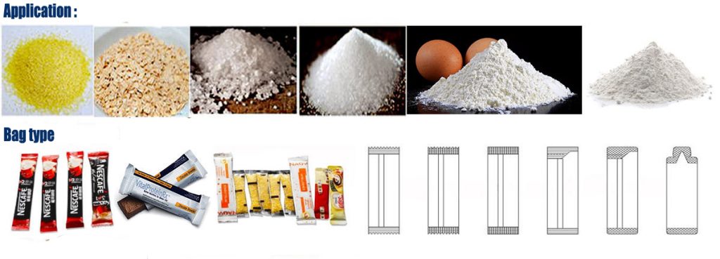 Cette machine est principalement utilisée pour emballer des produits en poudre: lait en poudre, lait en poudre, café en poudre, épices, poudre de curry, protéines en poudre, condiments, produits à base de plantes, produits chimiques et médicaments en poudre.