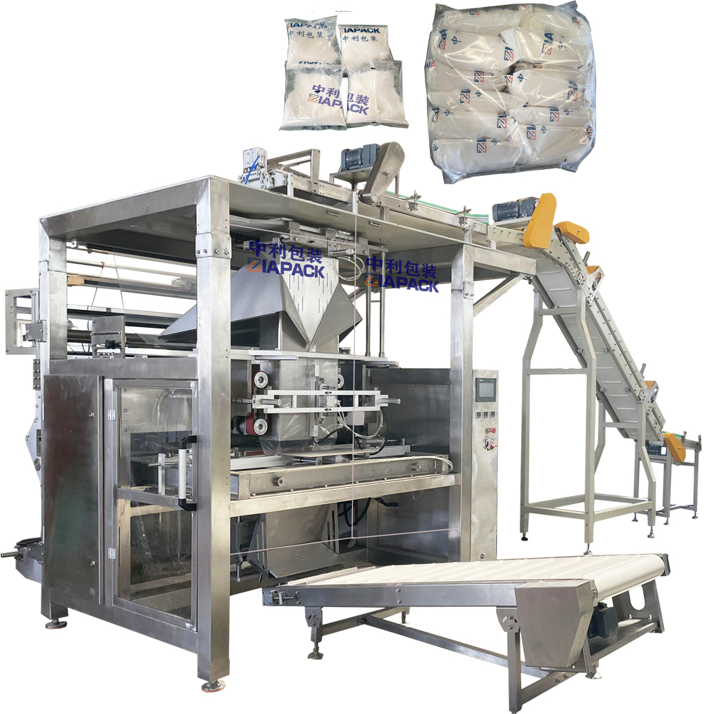 - Pour l'emballage secondaire (emballage automatique des petits sachets dans un grand sac plastique) :
